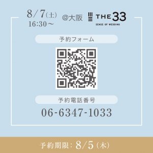第1回:8月7日(土)16:30~@大阪(The 33 Sense of Weddingにて)