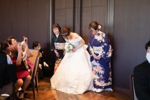 ご中座相手の方と一緒にお色直しへとすすむシーン。