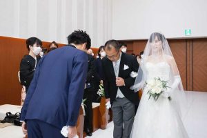 当日のリハーサルで初めて父とバージンロードを歩いたのですが、