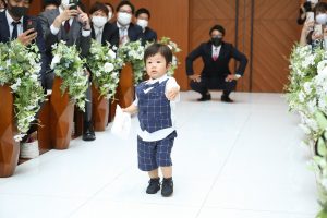 リングピローに乗せたおふたりの指輪を運ぶ役目をしてくれるのが、