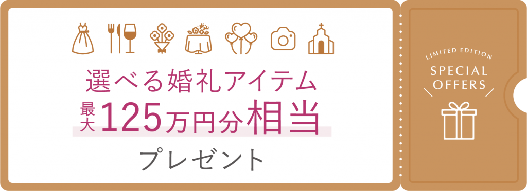詳しくはブライダルフェアにご参加いただき、ご紹介させていただきますが、ご成約頂くタイミングや、