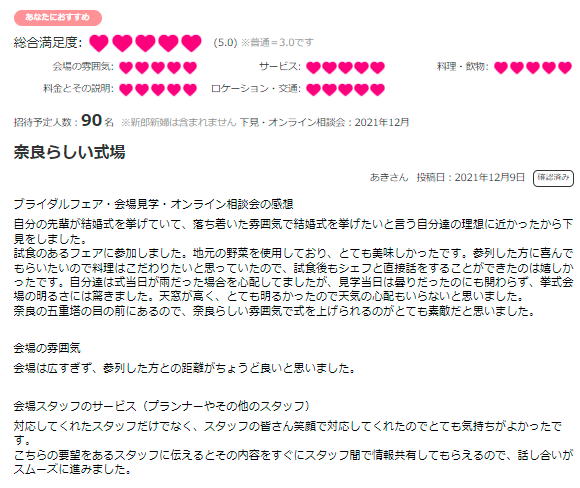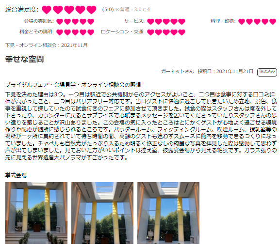 ご結婚式のお打合せ中のお客様もぜひ、口コミ投稿おまちしております♪