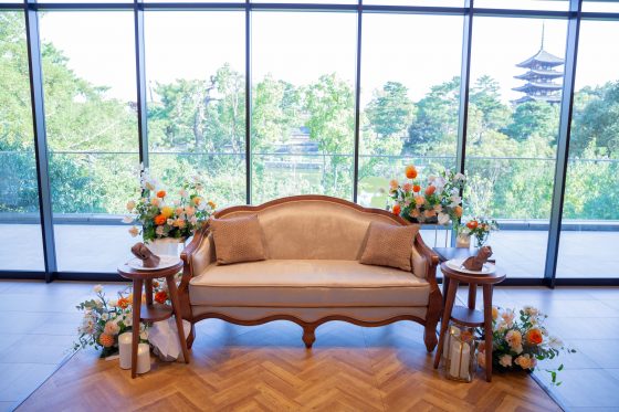 今、アットホームなウエディングを目指す花嫁たちの間で広がりつつある「高砂ソファ」