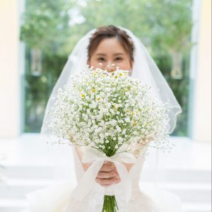 実は、ブーケだけでなく、こだわった「かすみ草」などの披露宴会場のお花も残したいと、