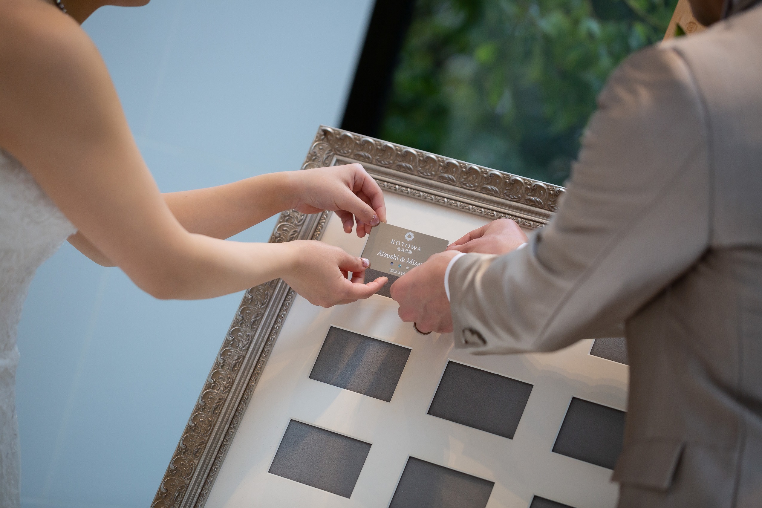 プレートにお二人のお名前・結婚式の日付・お誕生石が刻まれているのですが