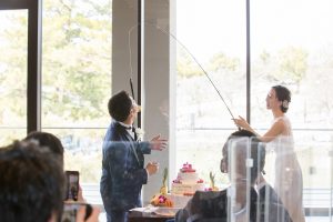 初めての共同作業 ケーキ入刀ファーストバイトは披露宴の定番となりましたね