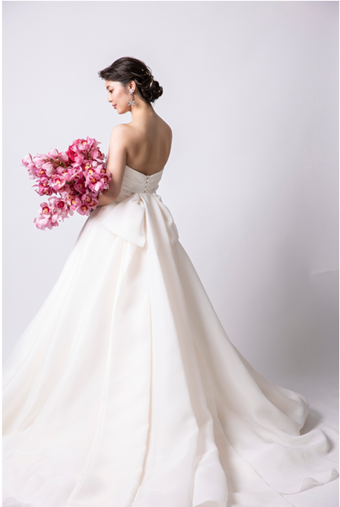 更に「背中見せ」もトレンドで、バックスタイルにこだわったドレスが注目を集めています。