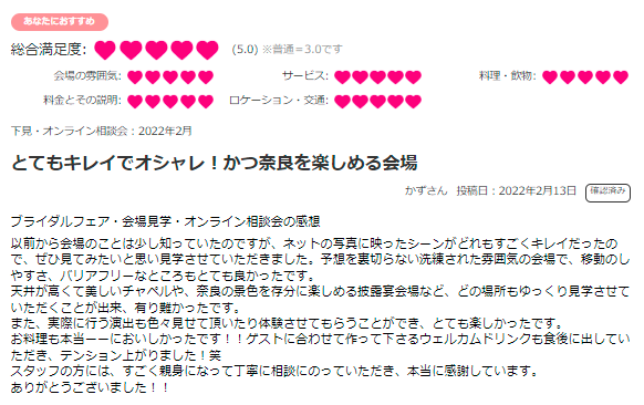 【とてもキレイでオシャレ!かつ奈良を楽しめる会場】