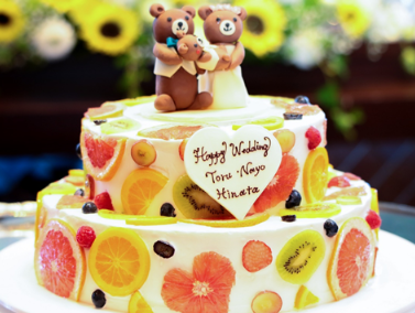 季節に合わせたフルーツを使ったり、好きなキャラクター、趣味、ペット、思い出の場所などおふたりの思い出を取り入れたり、ケーキの形、クリームの色や塗り方、ケーキを乗せる台の装飾まで細部までこだわることができるのはオーダーメイドスタイルだからこそ!