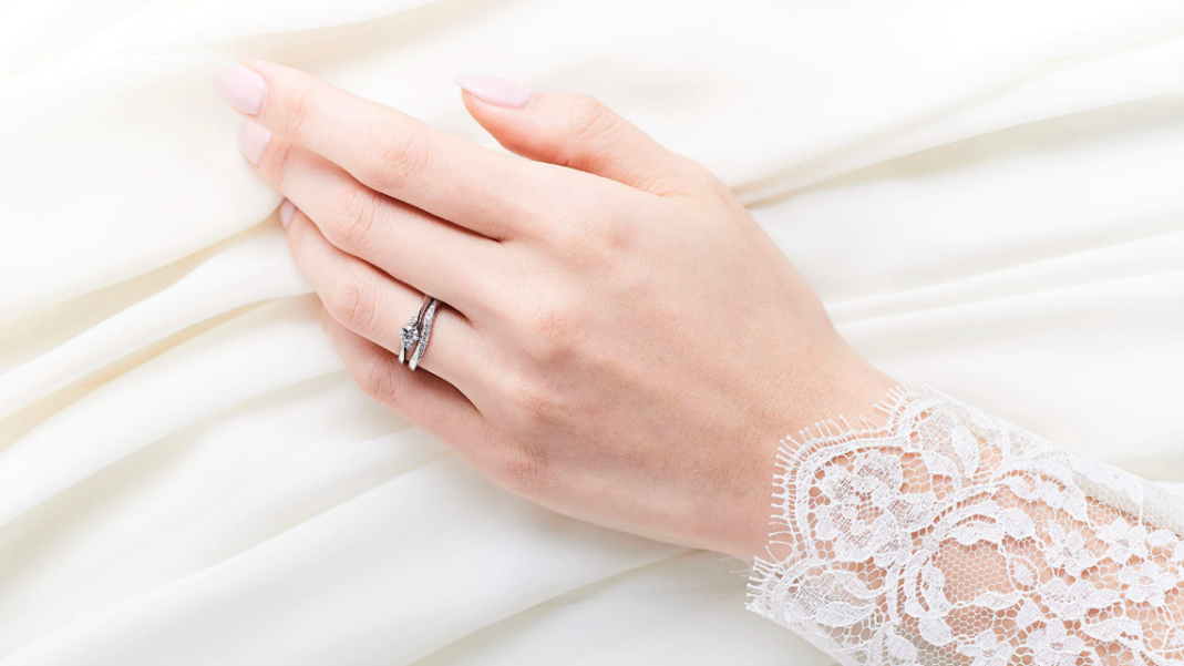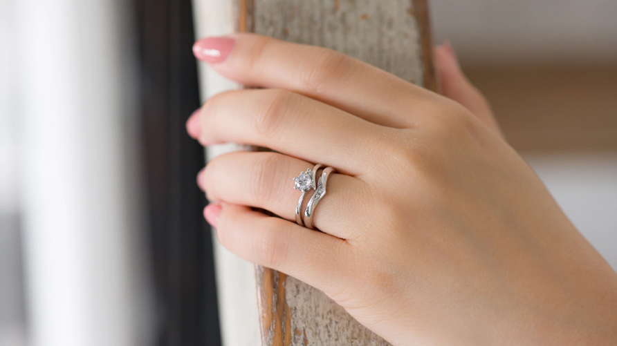 近年、婚約指輪と結婚指輪を重ねて着けるセットリングが