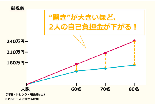 ご祝儀をたくさんの方にいただけるので、自己負担金が少なくなる!