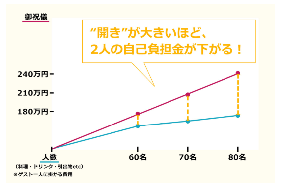 ≪ポイント2≫ ご祝儀をたくさんの方にいただけるので、自己負担金が少なくなる!