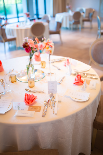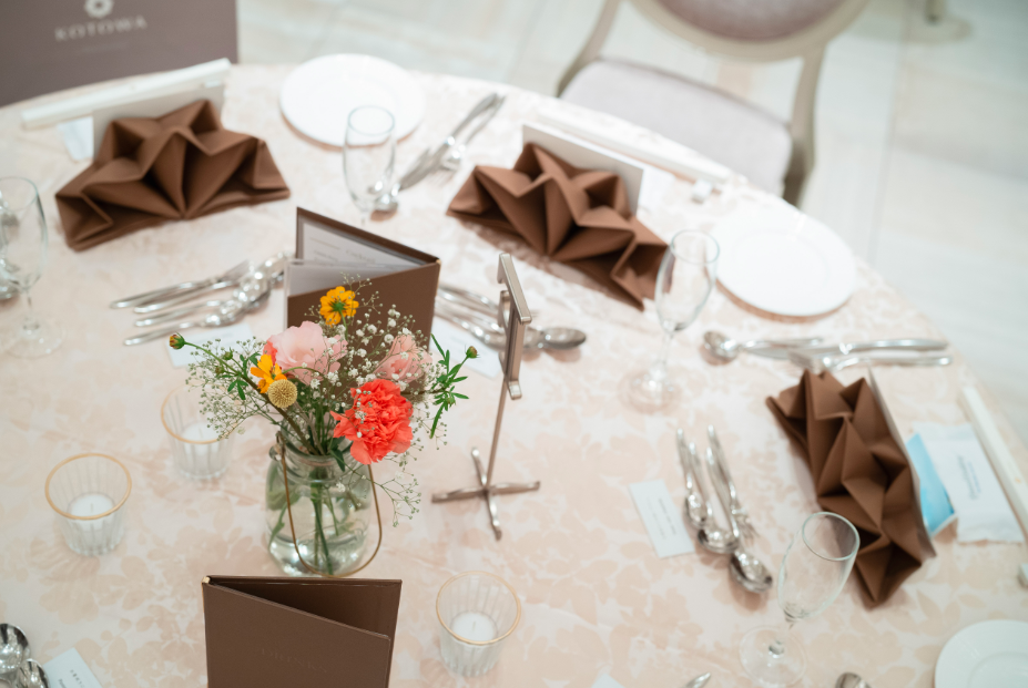 各テーブル毎にあえて異なるお花を活けゲストに合わせたおもてなしも楽しみの1つに