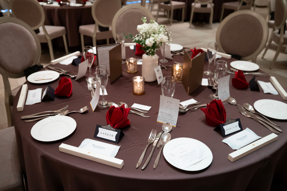 お花とテーブルクロスが会場全体のカラーバランスを作ります