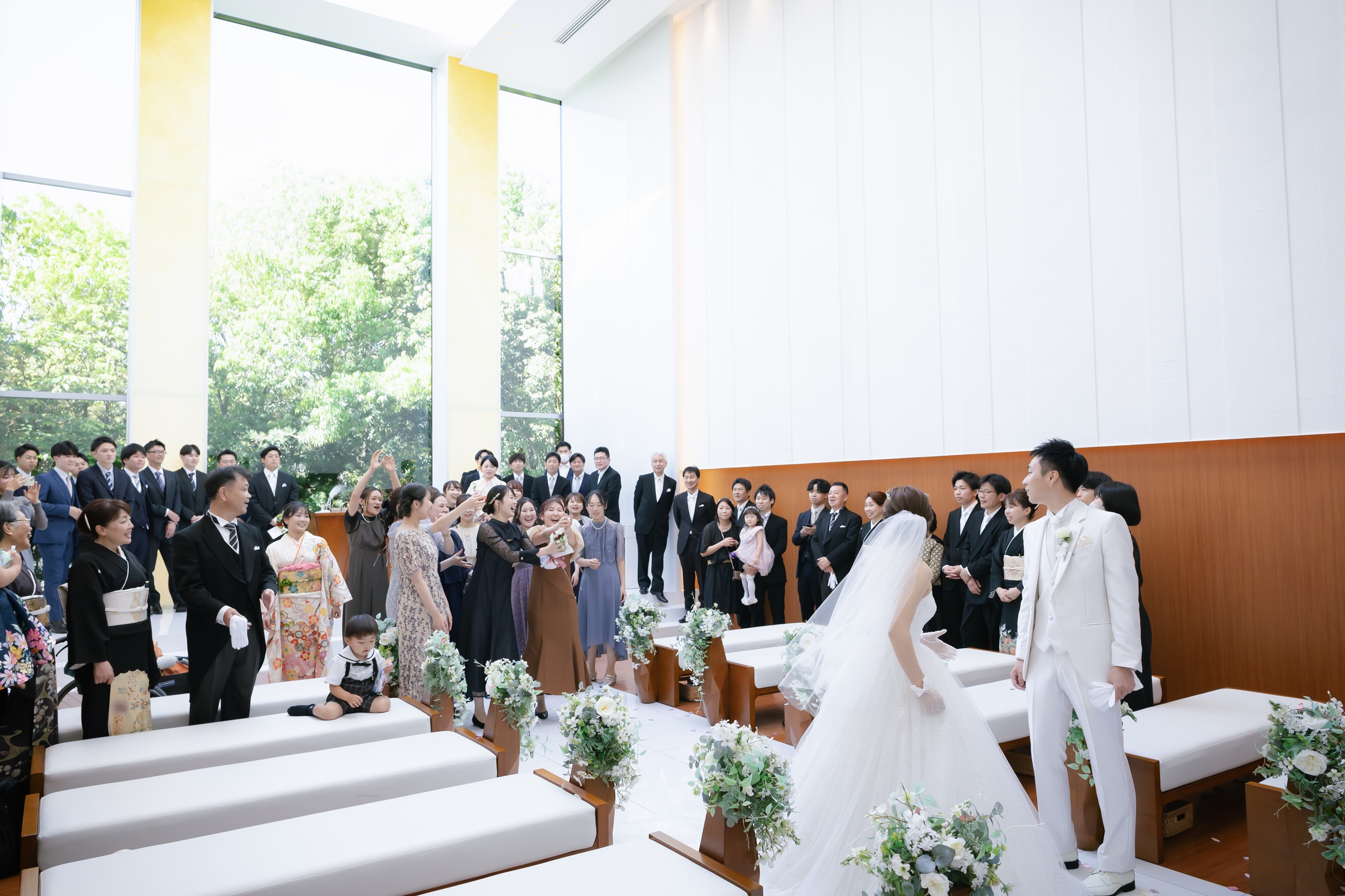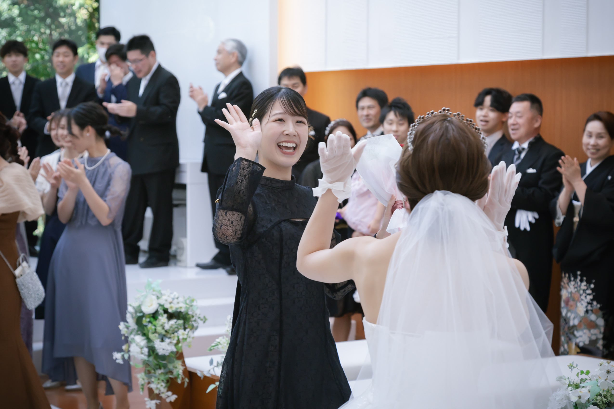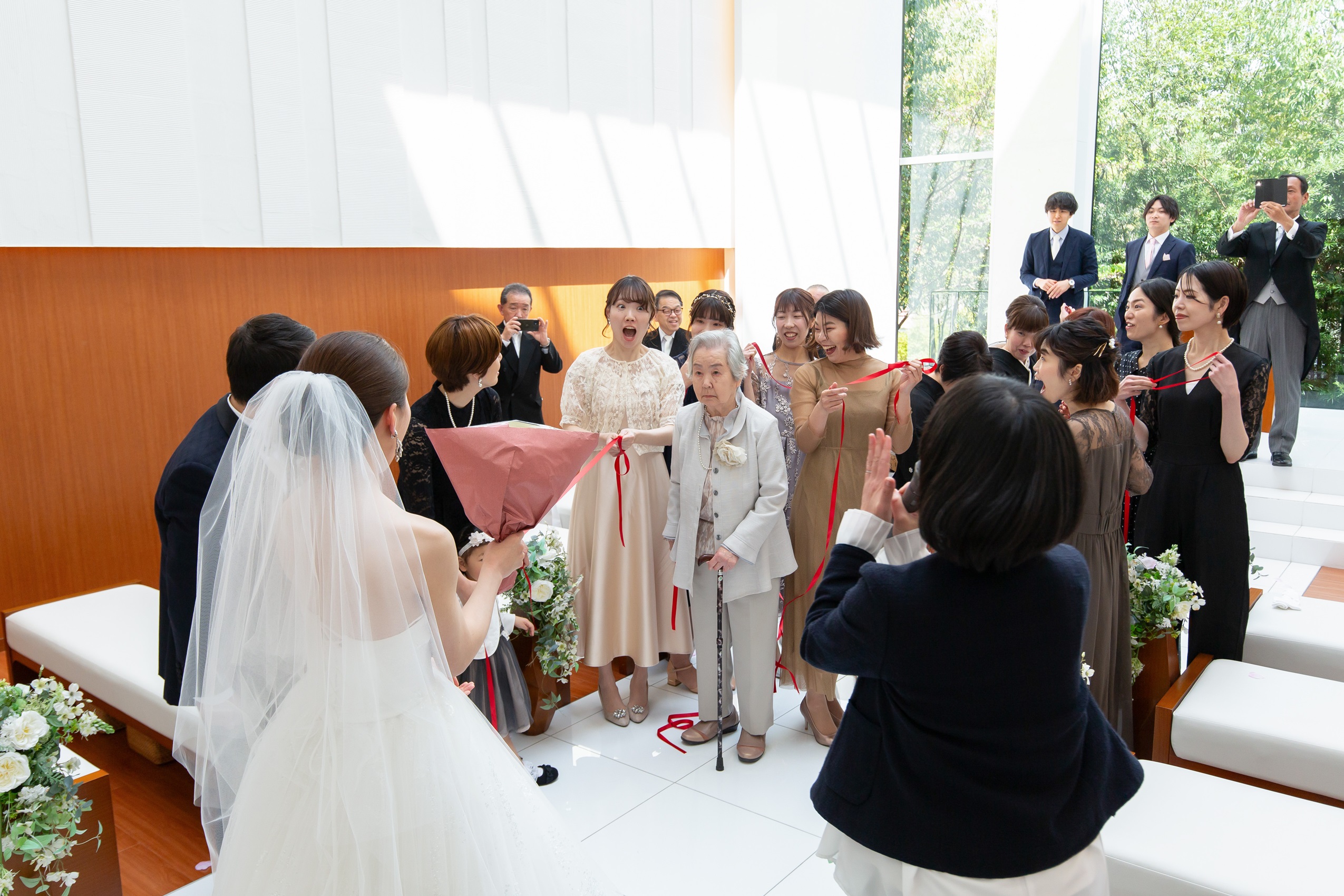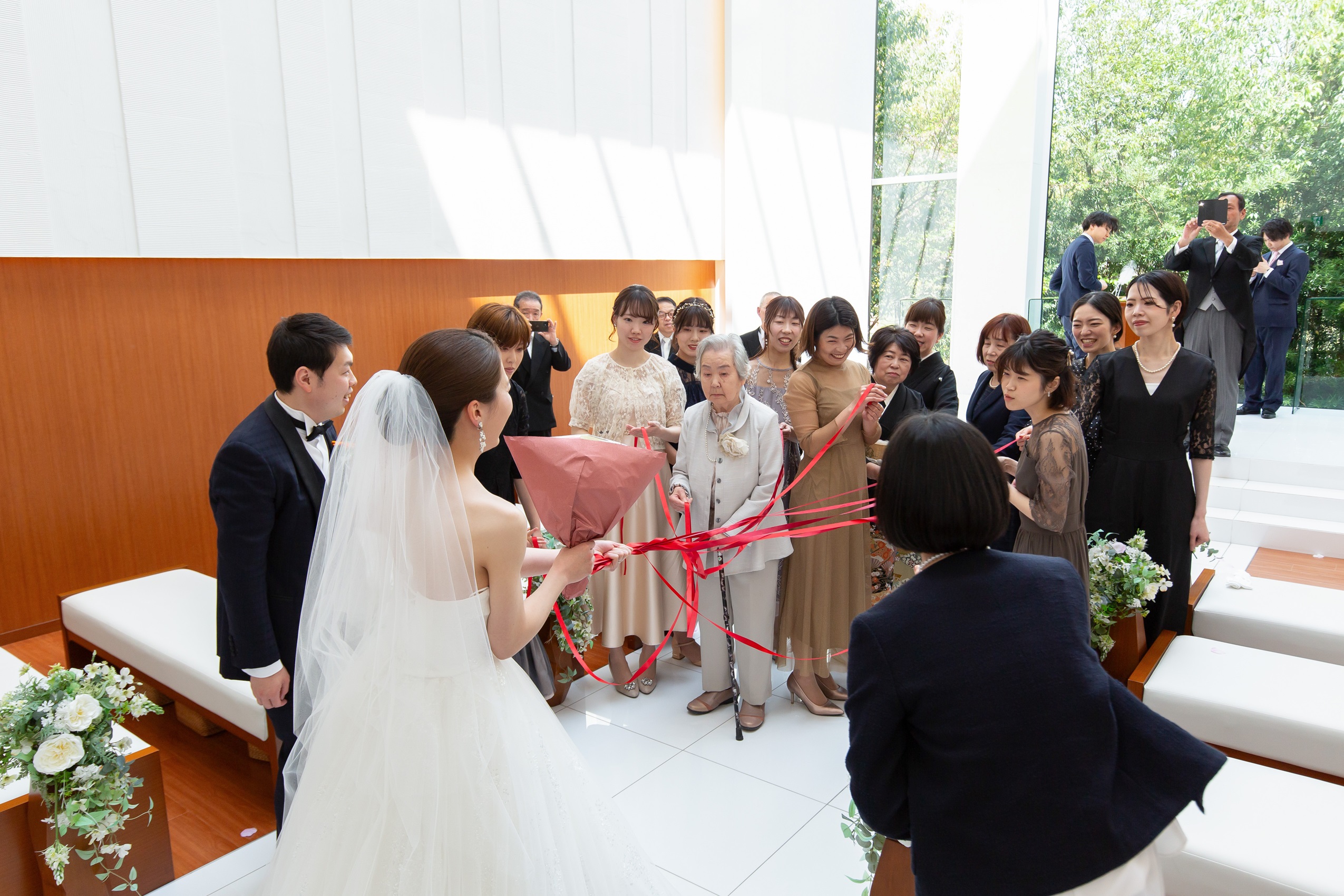 ブーケトスを行うことができ、雨天時でも安心して行うことができます。