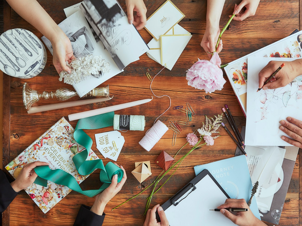 テーブルのコーディネートが完成するような参加型の演出のひとつです。