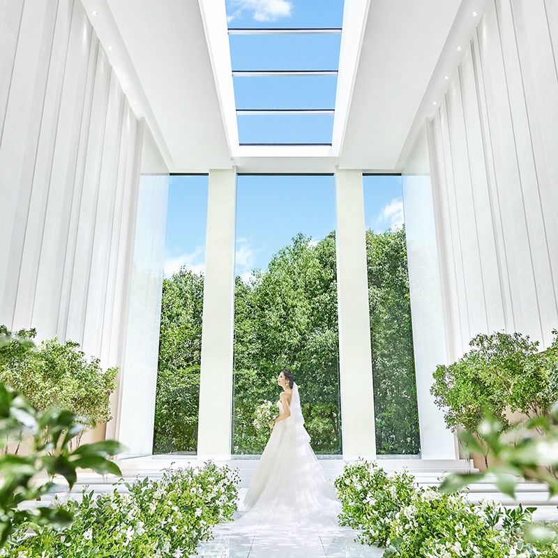 〈ポイント2:圧倒的に明るい自然光×緑のチャペル〉