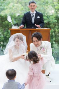 手作りリングピローを、お子様ゲストに持ってきてもらう演出も