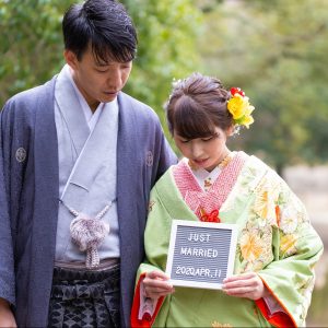 おふたりのオリジナルグッズと一緒に撮影や