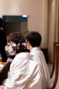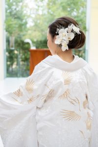 ブーケや会場にあわせて新婦さまのヘッド装花にも
