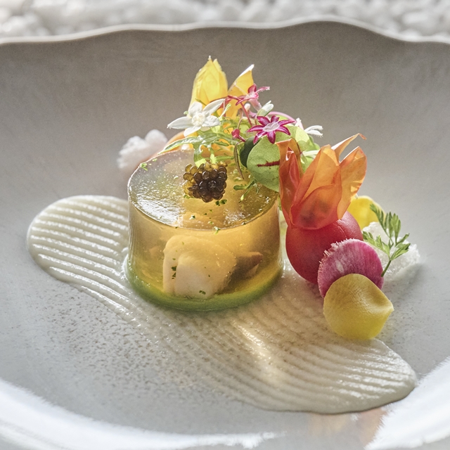 - 高級黒毛和牛をはじめ、大和伝統野菜や奈良漬けなど厳選された産地直送の食材をふんだんに使い、受け継がれてきた伝統技法を用いて季節に合わせた最高のアレンジでご提供致します。自然の恵みを主役にした、シェフこだわりの美食をぜひお愉しみください。