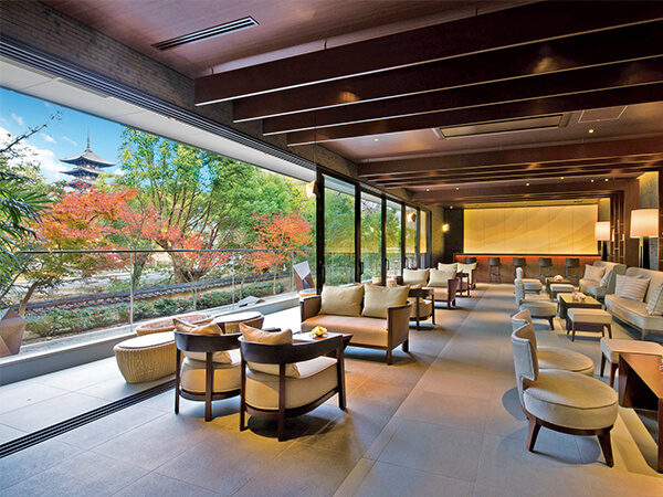 広々としたゲストラウンジ「万葉(KAZUHA)」からは、奈良公園や猿沢池、五重塔を眺められ、四季折々の美しい景色がくつろぎのシーンを演出します。挙式やパーティーまでのお時間もここで優雅におもてなしできます。