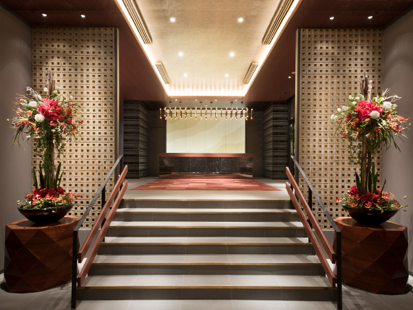 上質感に包まれたエントランスを通り、階段を上ってロビーに訪れたゲストは、ラグジュアリーな非日常の世界へ。重厚でゆとりある贅沢な空間がウエディングの高揚感を高め、最高の一日がスタートします。
