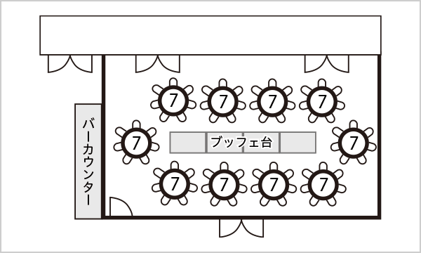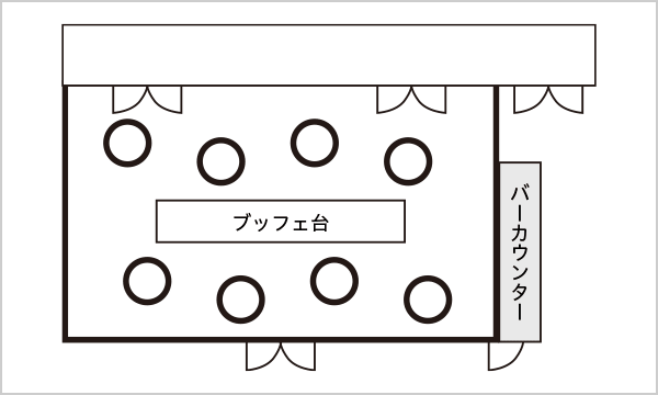 館内にはテイストの異なる2つのパーティー会場に加え、受付やウエイティングスペースとしてご利用いただけるラウンジ、控室として活用できる個室など、充実したパーティーを実現する空間と設備をご用意しております。また、最新の映像設備やバーカウンターでのドリンクサーブなど、パーティーを盛り上げる多彩な演出もお愉しみいただけます。