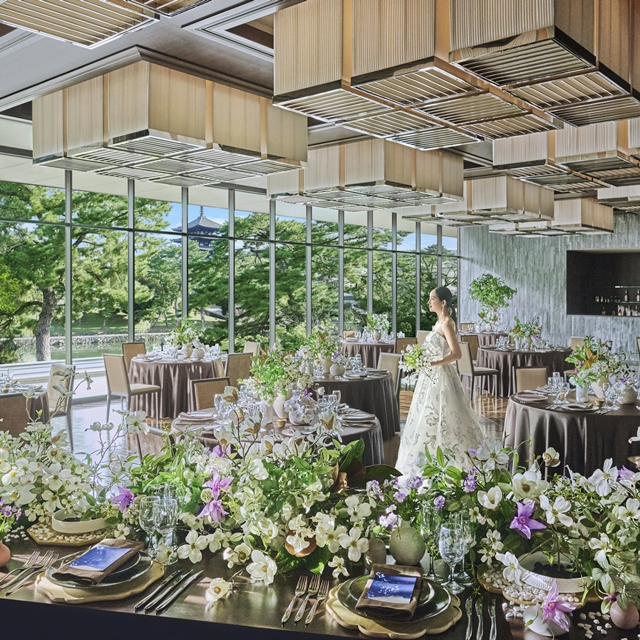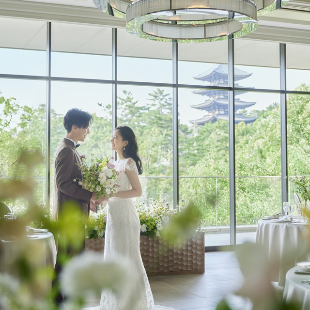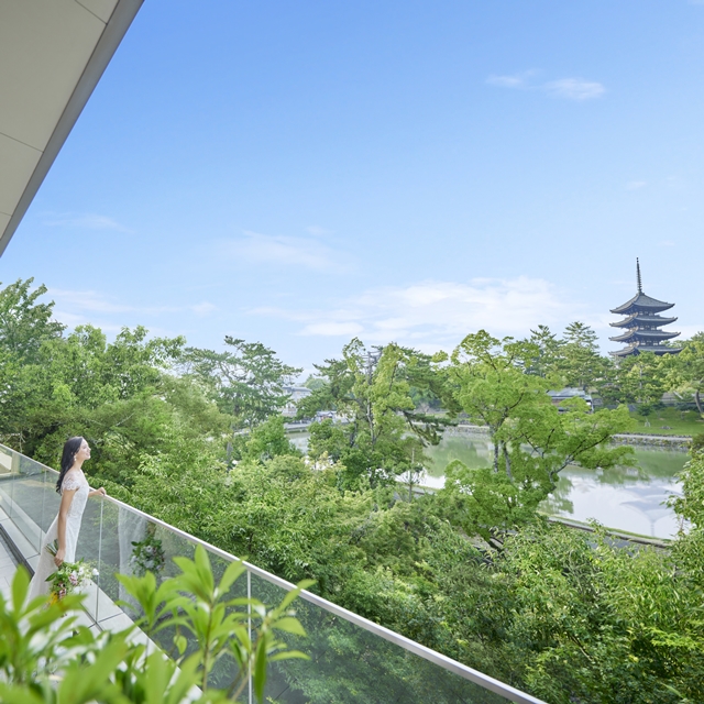 最寄りの近鉄奈良駅からわずか徒歩5分と、圧倒的なアクセスの良さを誇り、ゲストの皆さまを安心してお招きいただけます。また、JR奈良駅より徒歩14分、第二阪奈道路・宝来ICより20分と、遠方からお越しになる方にとってもアクセス便利な立地にあります。当日は送迎バスの手配も可能です。