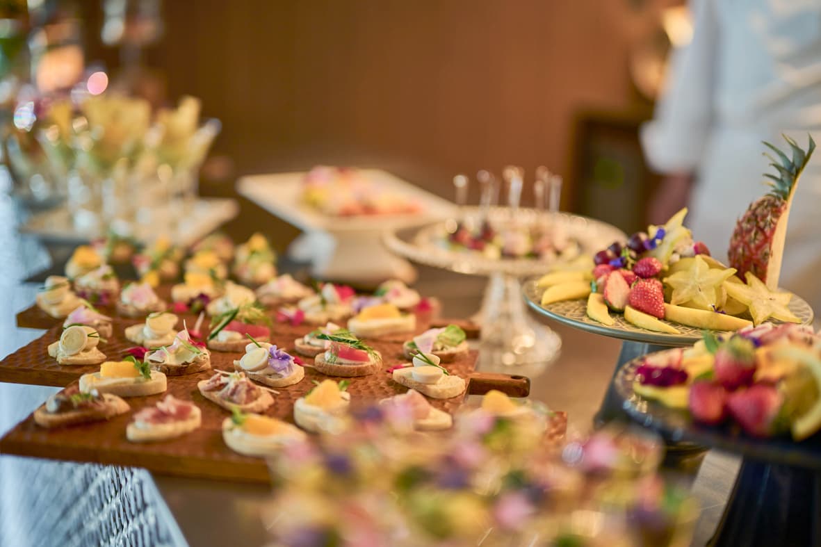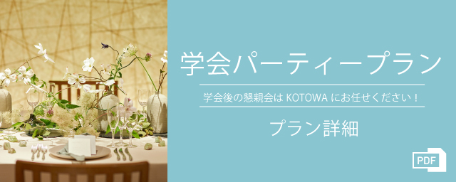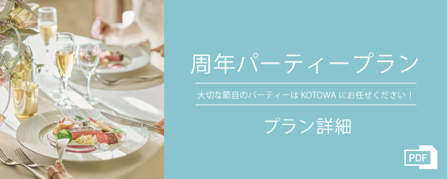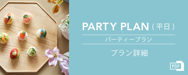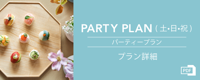 特別なパーティーに華を添えるのが、こだわりあふれる料理の数々。宴会・パーティーの様々な趣旨に合わせて料理長が提案させていただくメニューは、味、見た目ともに幅広い年齢層の方にご好評いただいております。例えば、健康セミナーに合わせたヘルシーメニューや、テラスで振る舞うビュッフェスタイルのメニューのご提案など、ご要望に合わせてフレキシブルに対応いたします。