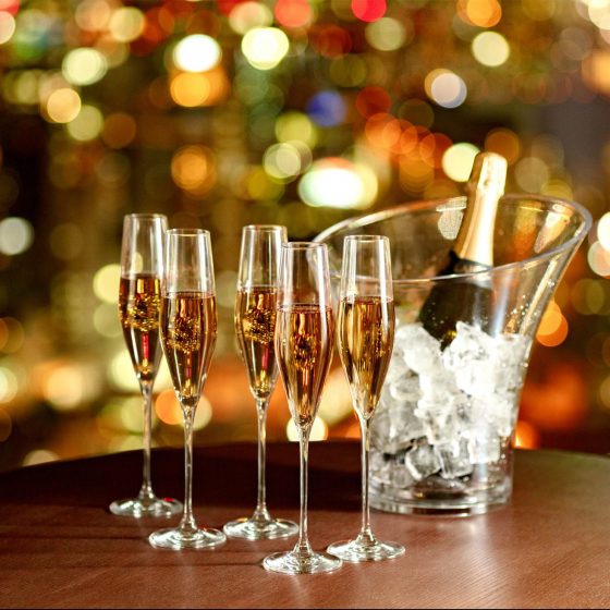 ブラウンを基調とした「AKATSUKI」は、上質で落ち着いた雰囲気のパーティー会場です。窓いっぱいに広がる奈良公園や五重塔のパノラマビューは、まさに絶景。四季折々の景色がパーティーを美しく彩り、金色に輝く格子柄の照明と温かみのある石壁が、くつろぎに満ちた時間を演出します。バーカウンターやテラスも使って自由度の高いパーティーをお愉しみください。
