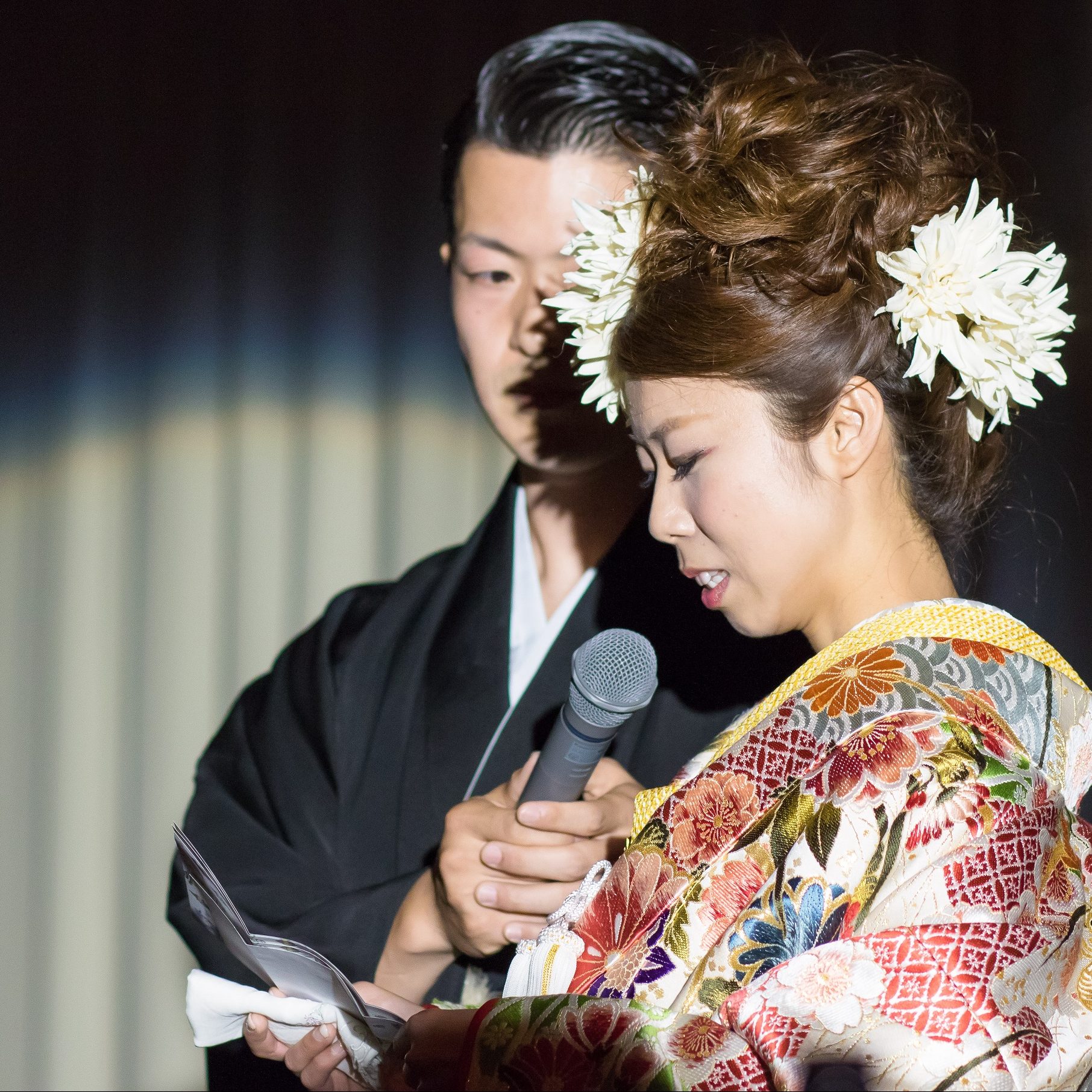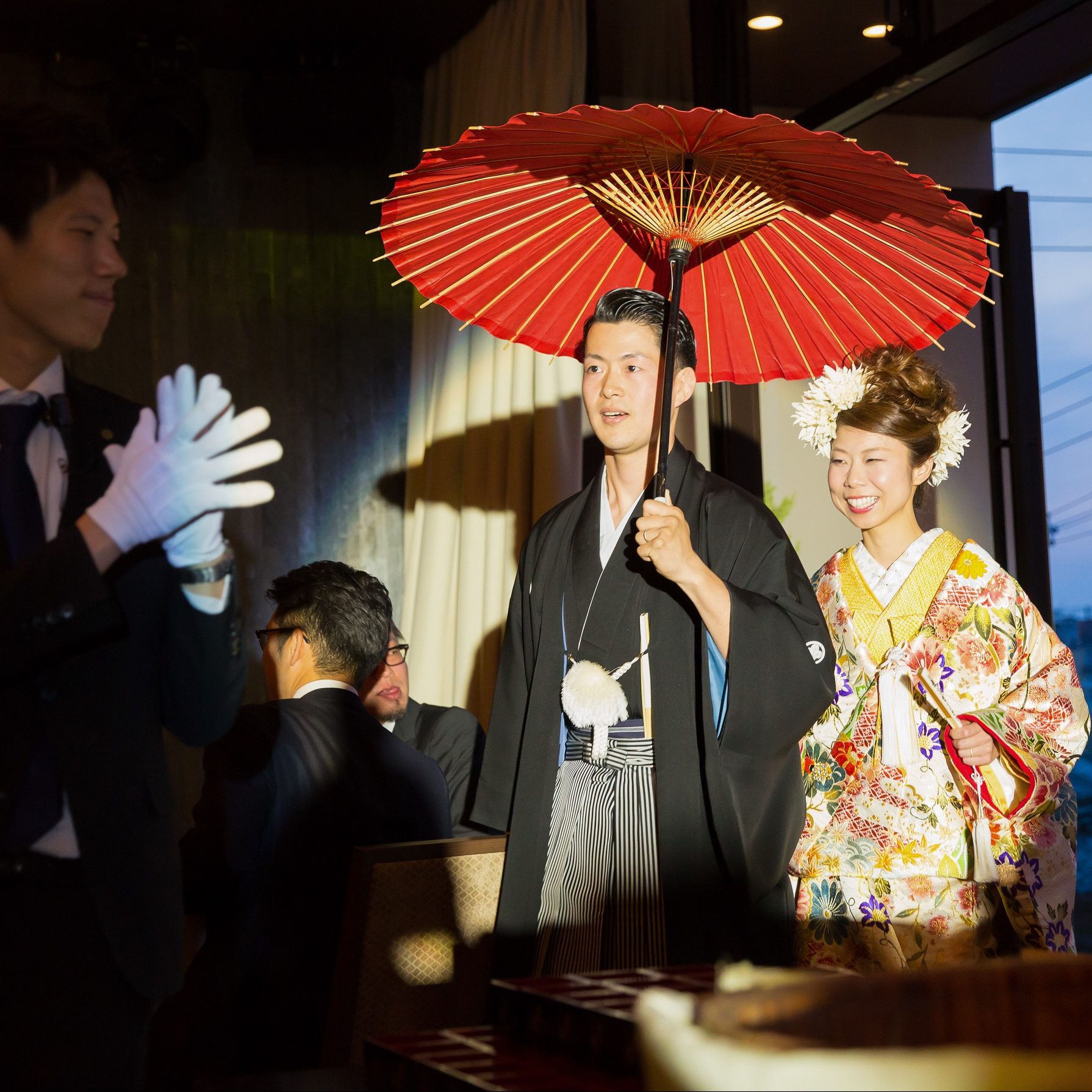 挙式は親族式でしたので、披露宴でも挙式らしいことがしたい!ゲストの皆さんにも見てもらいたい!と羽織袴と白無垢の姿で披露宴をスタートすることにしました。