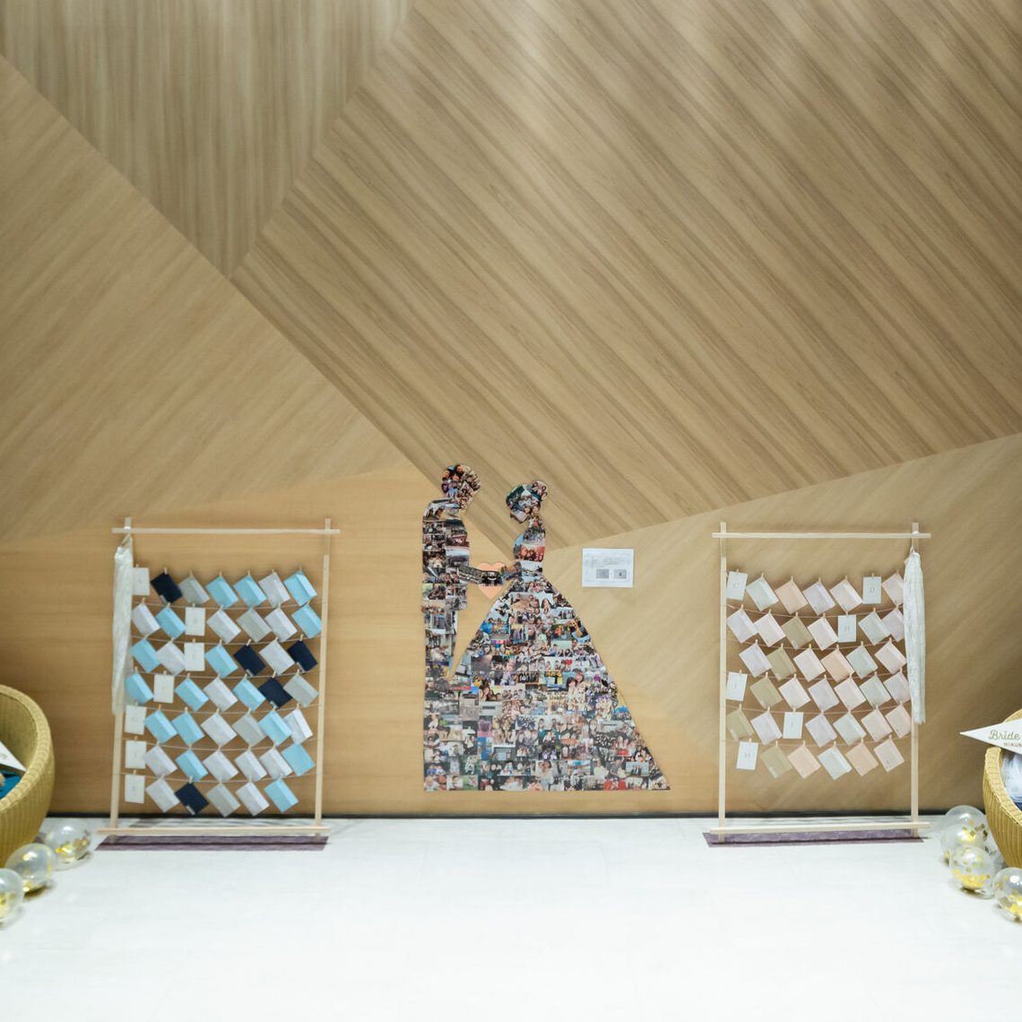 ゲストの方々へ感謝の気持ちを伝えたく、これまでの写真を繋げた等身大パネルとともに、ウォールレターを作りました。