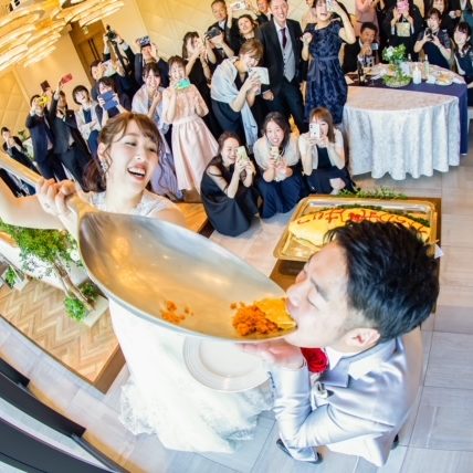 ウェディングケーキはオムライスに変更し、特大スプーンで写真映えも狙いました!笑