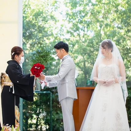 新郎側の両親にも参加して欲しかったので、ジャケットセレモニーとブーケの結ぶところはこだわりました。