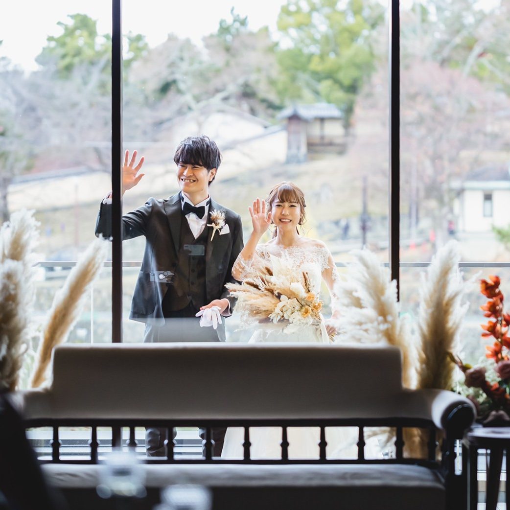 ゲストが県外の方が多かったため、駅からのアクセスの良さと奈良らしい景色を望める披露宴会場に特に魅力を感じました。