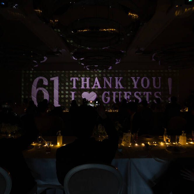 また、KOTOWAならではの演出でプロジェクションマッピングがあり、私たち夫婦は大好きなアーティストさんのライブ風のマッピングを作って頂きました。
