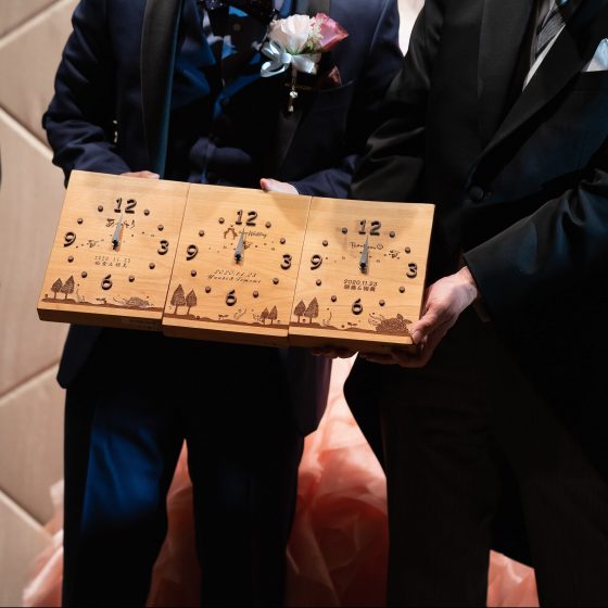 また私達は、披露宴でゲストの方達に10年後の私達へのメッセージを書いていただいてそれをキャンドルに封印して毎年の記念日にキャンドルに火を灯していくと10年後にメッセージが見れるという「タイムカプセルキャンドル」を取り入れたいと思っておりその時間を再入場の際に作っていただきました。
