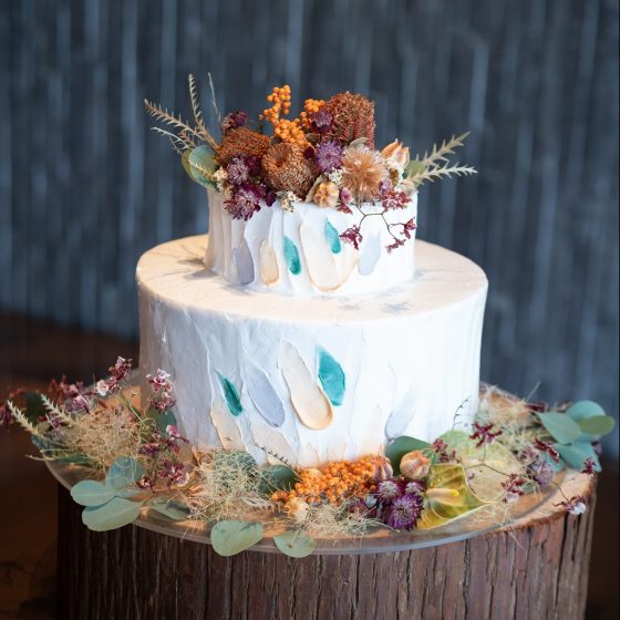 また、ケーキ自体にはドライフラワー、ペイントで装飾していただきました。