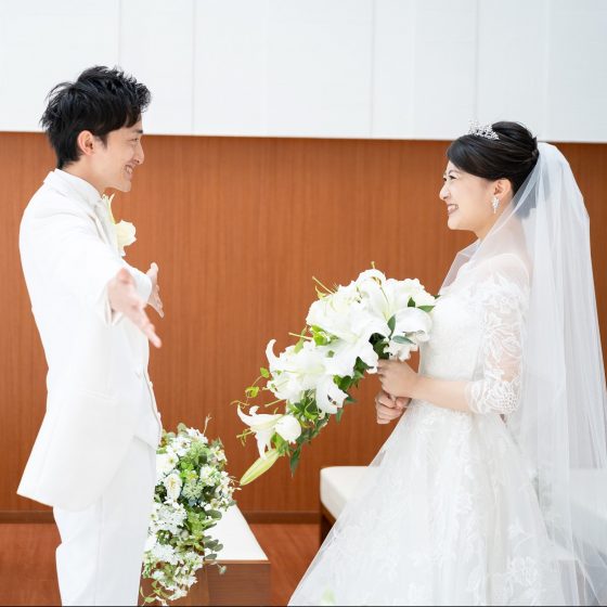 おかげさまで、後悔のない式を挙げることができました。当日は天候にも恵まれ、憧れのチャペルの天井からは光が差し込み、まるで太陽がお祝いしてくれているかのようで、温かく幸せな気持ちになりました。一生に一度の素敵なシーンになりました。