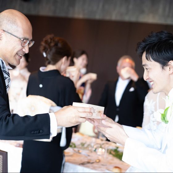 親族のみの少人数の式であったため、ゲストと話したり表情を近くで見たりしたいと思い、高砂なしの長卓にしました。