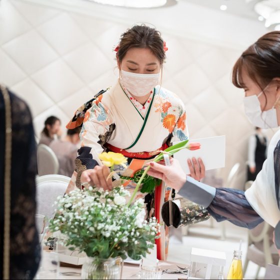 ゲストの方にお花を入れてもらってテーブル装花が完成するので、どんな雰囲気になるのかとても楽しみでした。