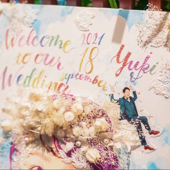 装飾や余興など、考え出すと色々やりたいことが出てきて、参考にインスタとかを見るとさらにいろいろなアイデアが見つかって、すごく悩んだりもしたけど、「悩んだときは最初に決めたテーマに沿って決めるといい」という正木さんからのアドバイスのおかげで、自分たちのやりたいことが明確になっていきました。