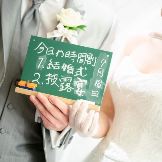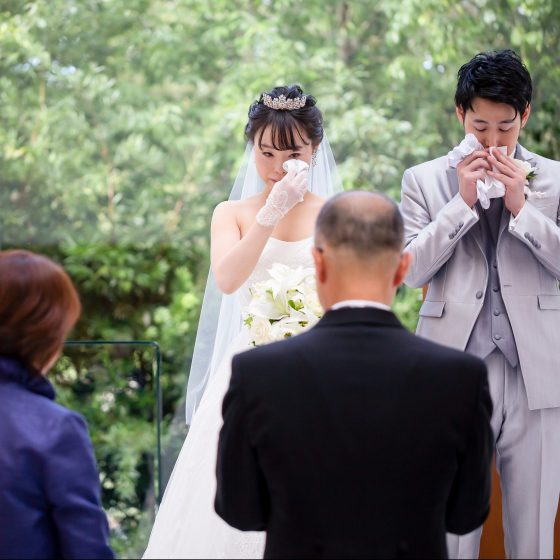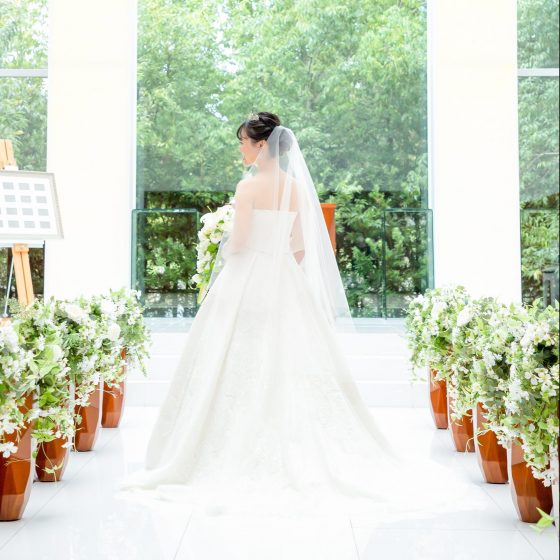 コロナ禍での式であったり、前日の夜から朝にかけて台風が直撃したりと、式の直前まで“わたしたちは本当に式ができるのか…?”という不安でいっぱいでしたが、チャペルに入った瞬間スッキリと晴れていて本当に感動しました。