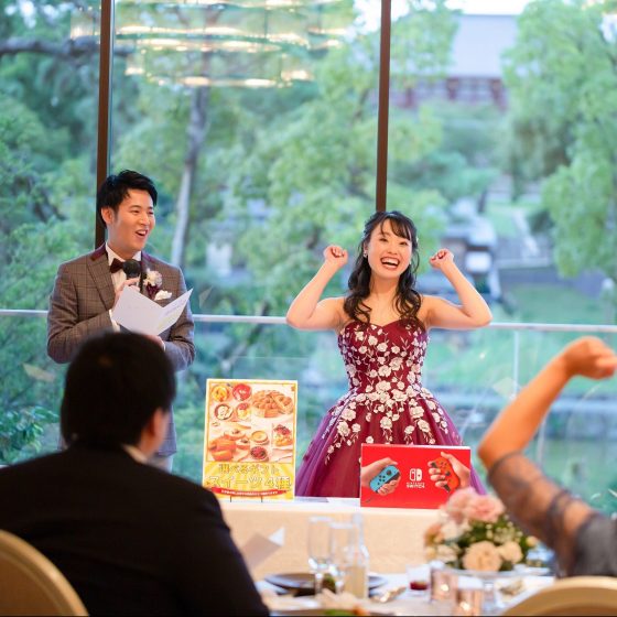 わたしたちの共通の趣味が音楽なので、入場やムービーの時だけでなく、歓談中のBGMもとても悩みながら決めました。また、余興も自分たちで企画することにしました。