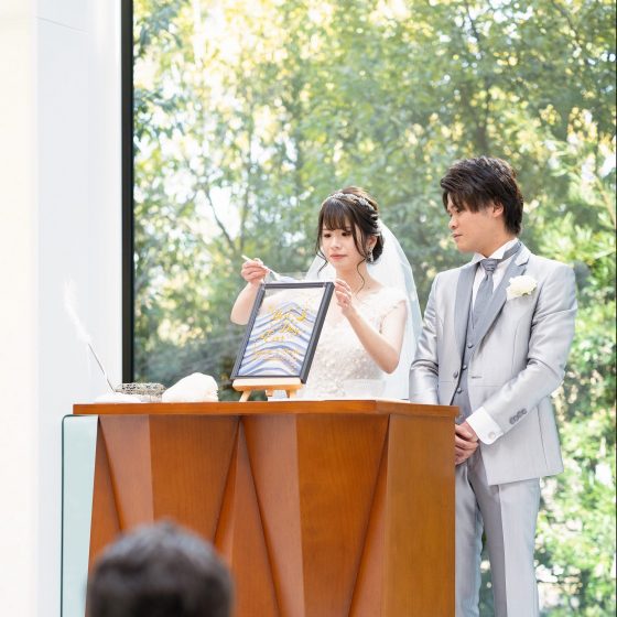 少人数の家族挙式で、もともと新郎新婦だけが主役だという挙式スタイルが苦手だったので、列席者にも参加してもらう場面を設けたいと思っていました。