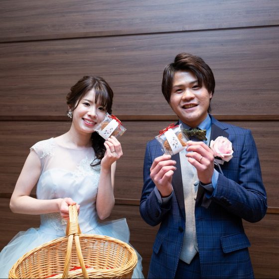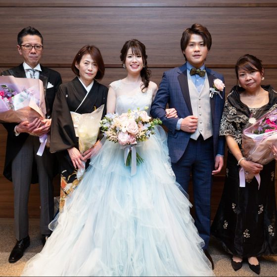 ファーストバイトの後には新郎新婦の母親それぞれにサンクスバイトをして、中座の時には新郎は姉と妹、新婦は祖母と妹と一緒に行いました。