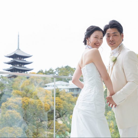披露宴会場は窓から見える五重の塔がとても綺麗でした。