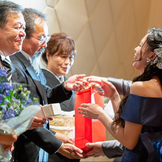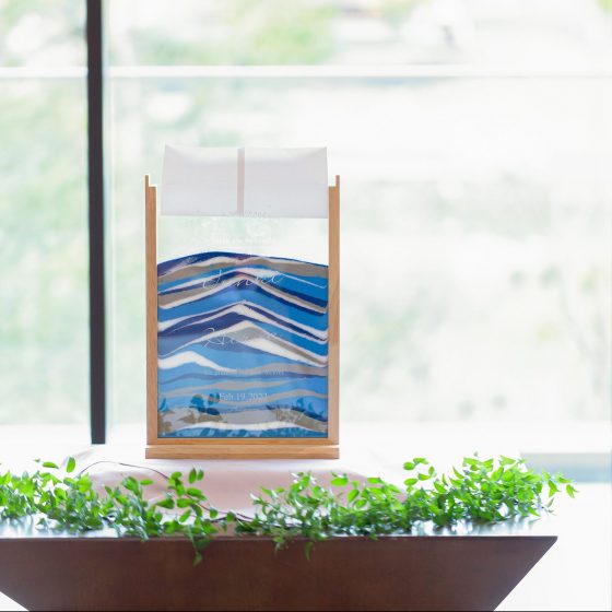 私達が好きでよく行く場所がら水族館で、水族館には色んな地域から集められた魚達がいます。結婚式当日も色んな所に住んでたゲストの方々が1つの所に集まるというところからAquarium。そして、結婚式は私達だけではなくスタッフの方々がご尽力してくださるからこそ成り立つものだと思うので、KOTOWAさんを代表してプランナーの宮本さんのお名前をお借りしまして、【Aquarium Wedding with 宮本】とつけさせていただきました。