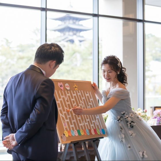 ゲストの方も一緒に参加して、楽しめる式にしたかったので参加方のイベントも入れました。あみだくじタイムでは景品を考えるのもこちらもとても楽しみました。